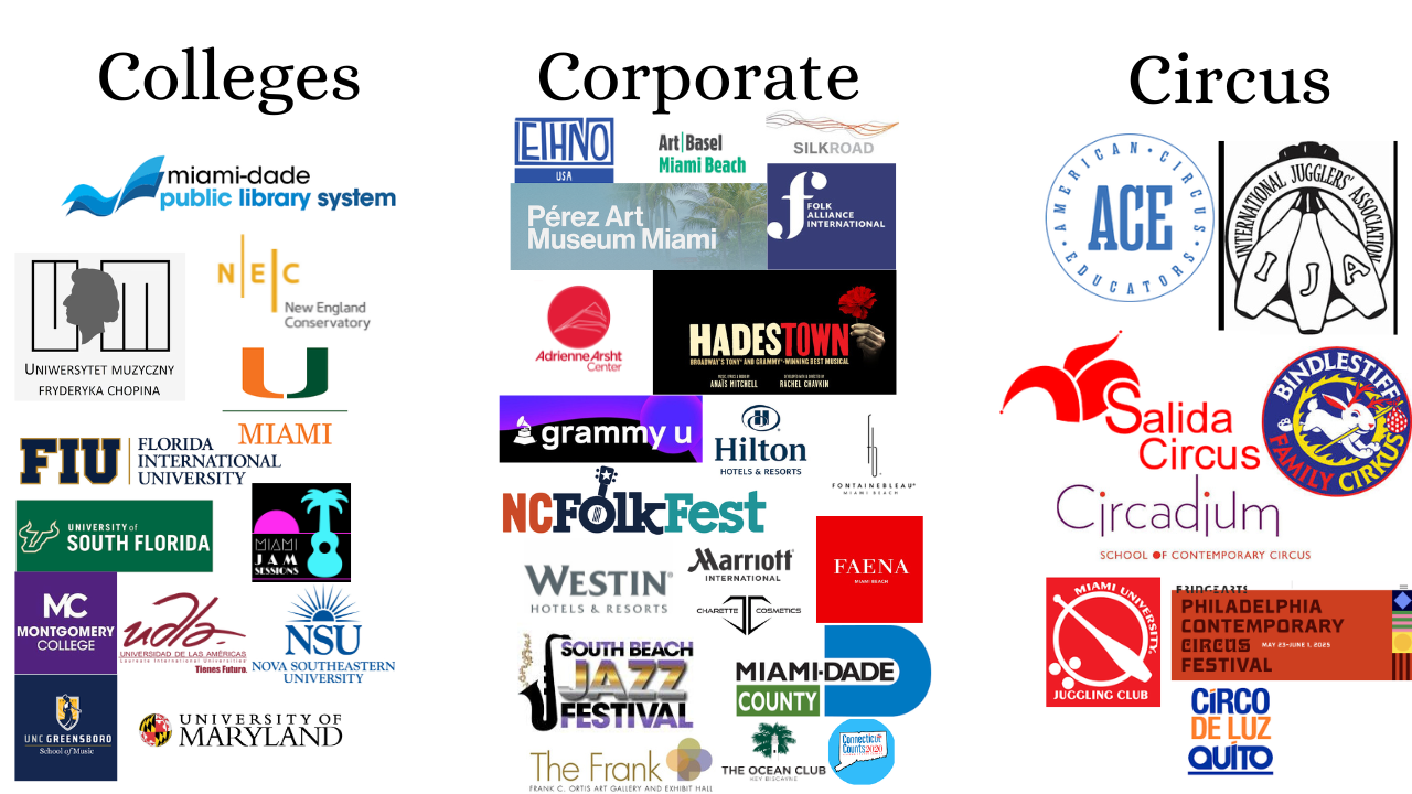 With over 23 years of experience, she has performed at red carpets, music festivals, weddings, proposals, yacht parties, birthdays, corporate events, juggling festivals, circuses, and more.